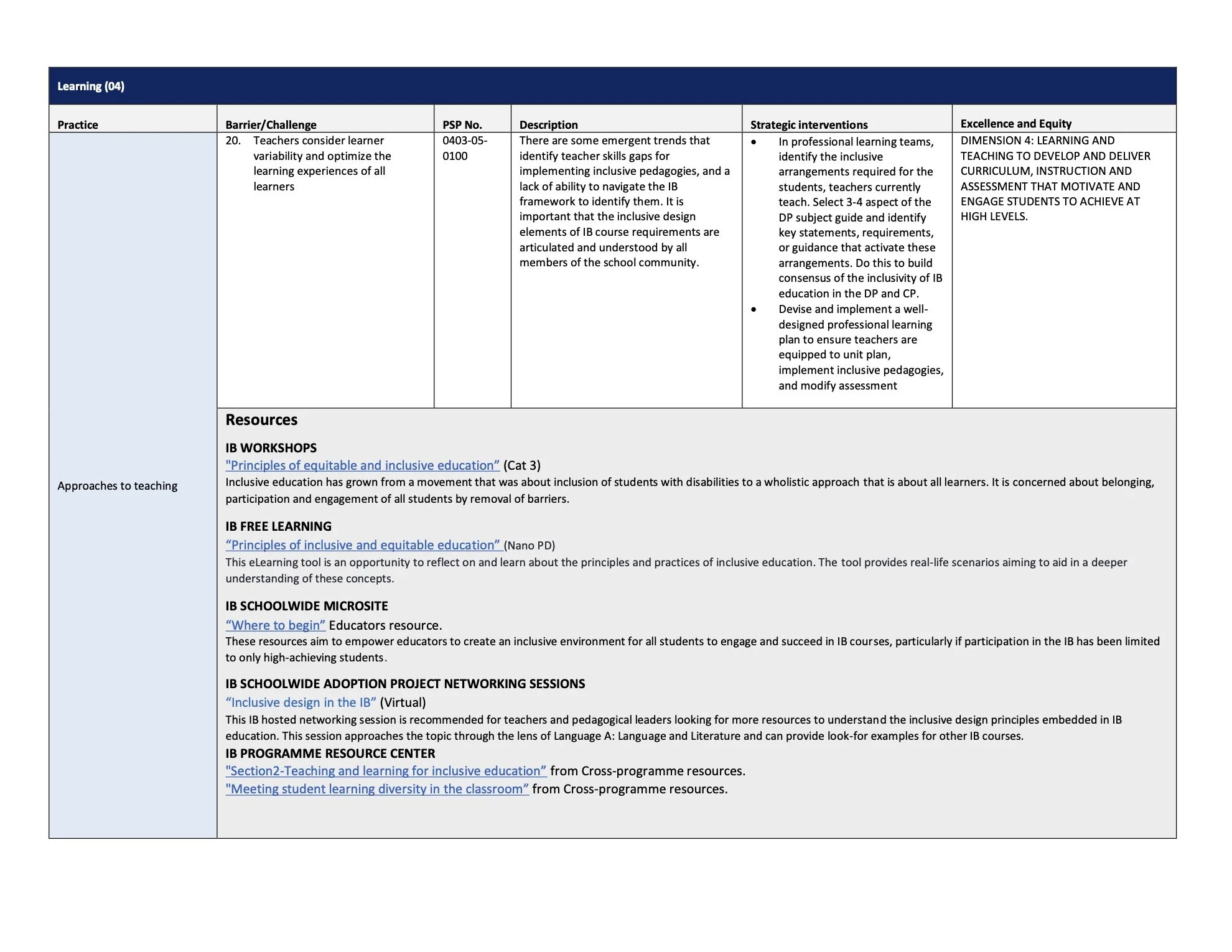 It is also useful to refer directly to the IB Programme Standards and Practices. And, the IB framework for Excellence and Equity.